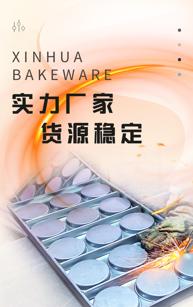 主要產品:鋁合金一體成型蛋糕模具,冷軋板沖壓不粘蛋糕、面包模具,鍍鋁板不粘蛋糕、面包模具,不銹鋼烤盤模具,各種規格吐司、法棍、漢堡、平盤產品,以及多類型食品機械等。為更精準地滿足市場需求,企業依托自身優勢,為廣大合作伙伴提供產品個性化訂制服務。